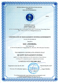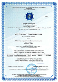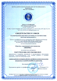 - соответствиe системы менеджмента качества требованиям международных стандартов серии ISO 9001:2015 и ГОСТ Р ИСО 9001-2015;